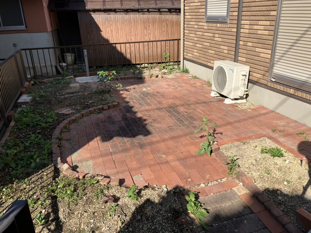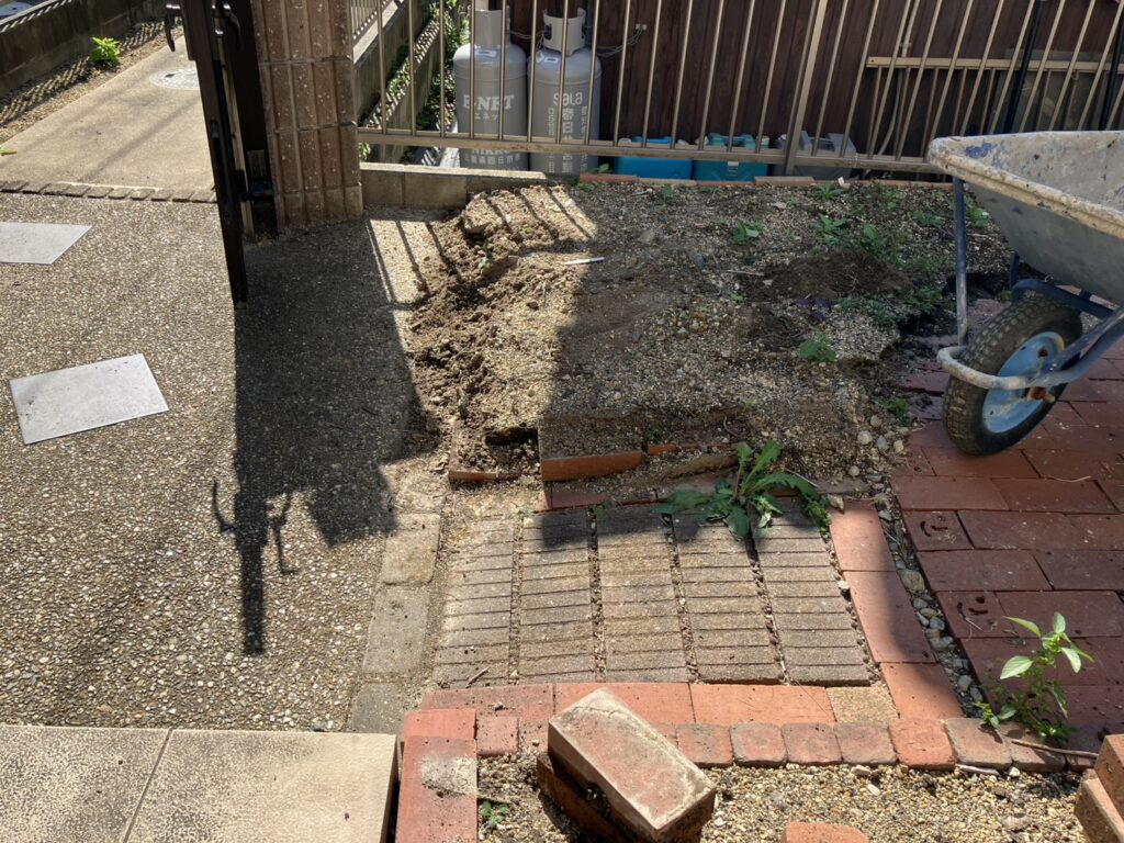 レンガを撤去し人工芝にします。