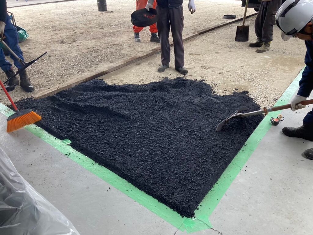新築舗装工事 2024.11.15 整備工場舗装工事 工事部担当 山田です。 自社整備工場の舗装打ち替え工事です。ボロボロになった既設アスファルトの撤去状況です。 10tダンプにアスガラを積み込みし処分場に運搬します。 既設アスファルト撤去後、砕石を搬入し路盤整正となります。 路盤整正後です。 舗装状況です。 舗装完了です! Prev 一覧に戻る Next
