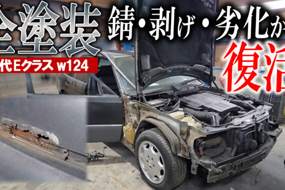 経年劣化で朽ちたボディー 初代Eクラスドイツの名車を復活!メルセデスベンツ w124をレストアも兼ねて全塗装!
