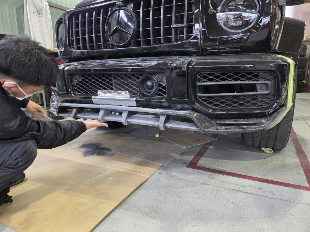 W463 G550をG63仕様→W463A G63フロントスポイラー加工取付